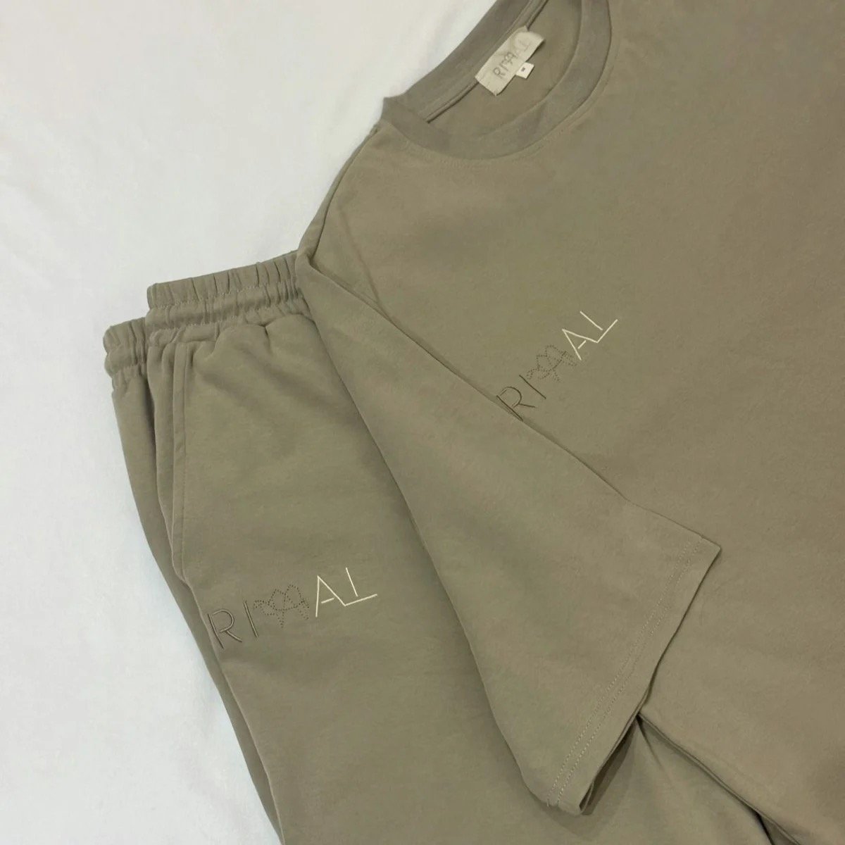 طقم عملي ومريح مصنوع من قماش قطني بجودة عالية لطيف على بشرة أطفالك بتصميم بسيط وواسع يسمح بالحركة بحرية، مثالي للّعب والنشاط اليومي بأناقة ناعمة.